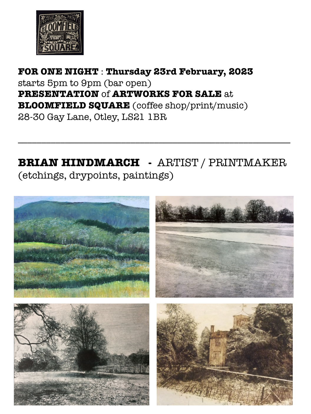 PRESENTATION of ARTWORKS FOR SALE at BLOOMFIELD SQUARE (coffee shop/print/music) 28-30 Gay Lane, Otley, LS21 lBR